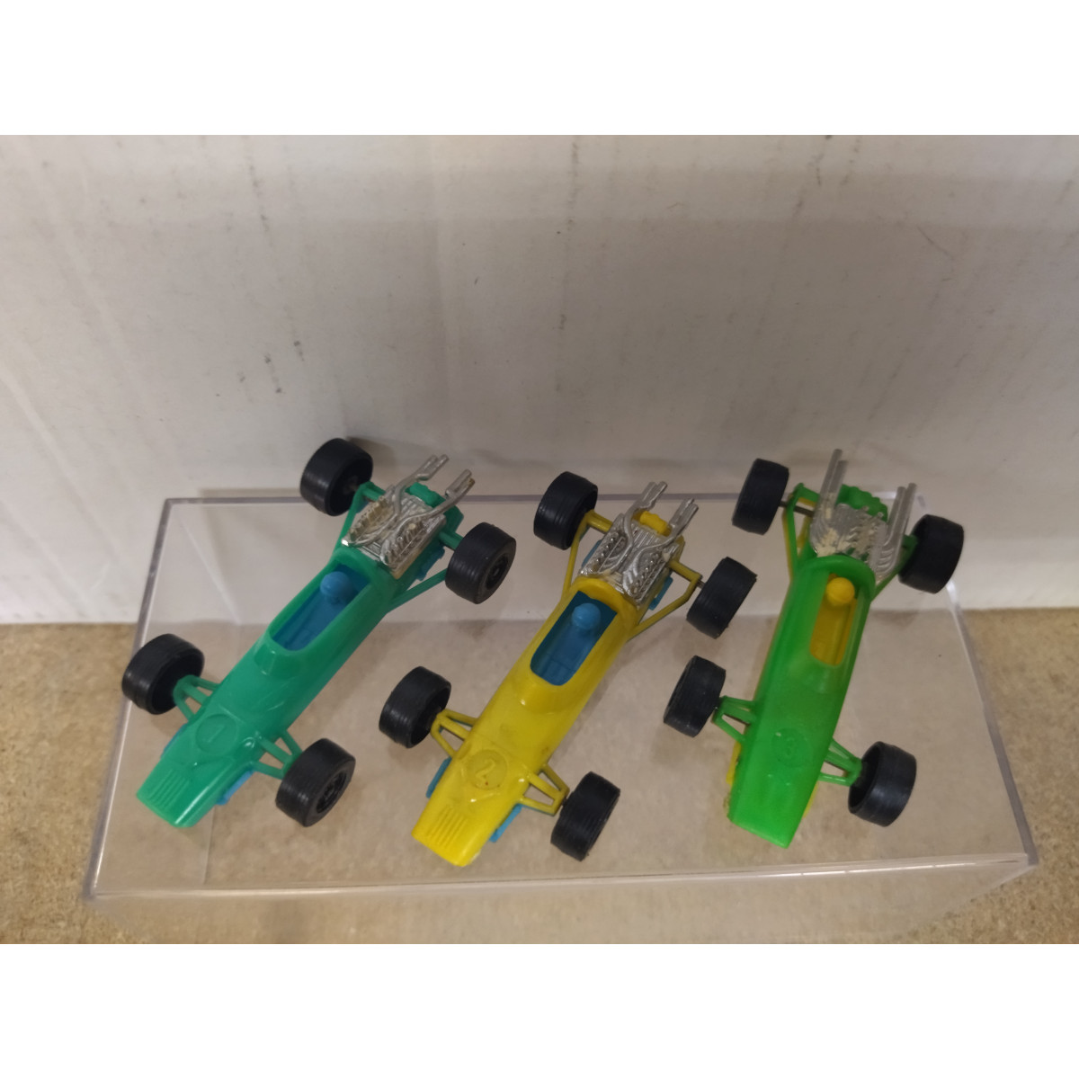 LOT X 3 CARS F1 FERRARI F1 & LOTUS F1 7cm Long PLASTIC TOYS MADE IN W.GERMANY