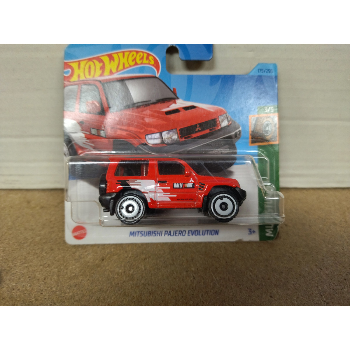 MITSUBISHI PAJERO EVOLUTION RED RALLIART 3/5 MUD STUDS 1:64 HOT WHEELS