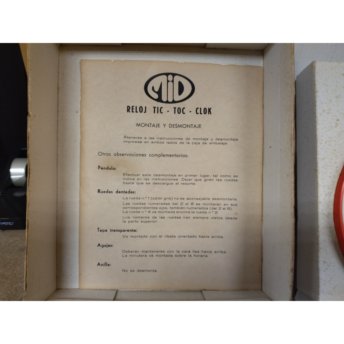 RELOJ TIC TOC CLOK JUGUETES MID 70´s NON TEST CAJA CARTON ROTA