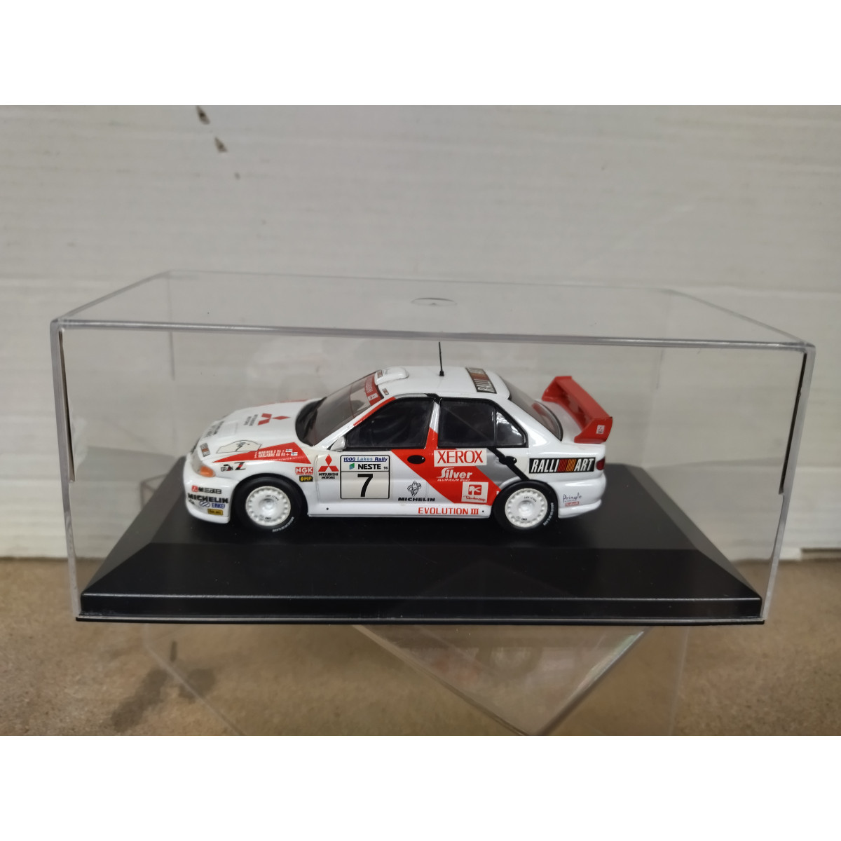 MITSUBISHI LANCER EVO III 1996 RALLY 1000 LAKES MAKINEN 1:43 ALTAYA BOX NO ORIGINAL